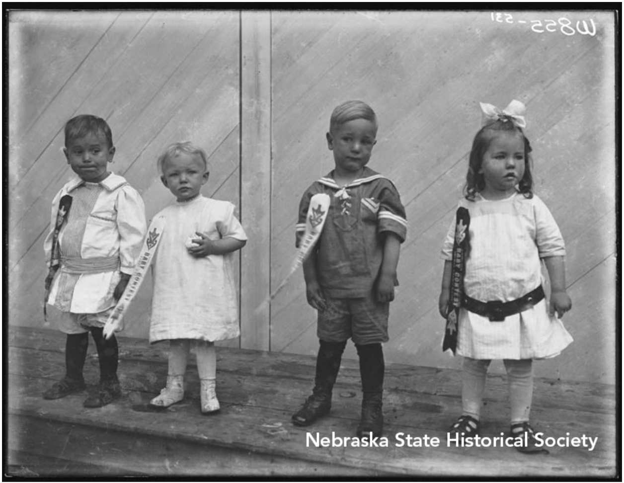 The slideshow included seemingly innocuous images, such as a sight from the 1940 Nebraska State Fair, where four toddlers stand awkwardly wearing giant sashes embossed with “Baby Contest.” The other primary documents were far more glaring, such as a sign that read "SOME PEOPLE ARE BORN TO BE A BURDEN ON THE REST", which was displayed at public events.